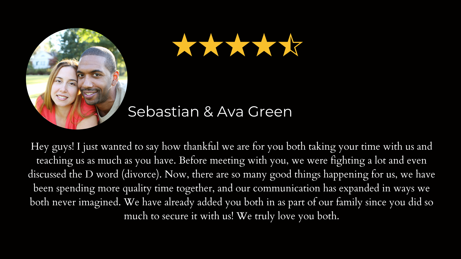 In addition to being happily married for 9 years, we have 14 combined years of experience in marriage counseling and 10 years of marriage coaching experience. We are also experts in personal development and relationships.